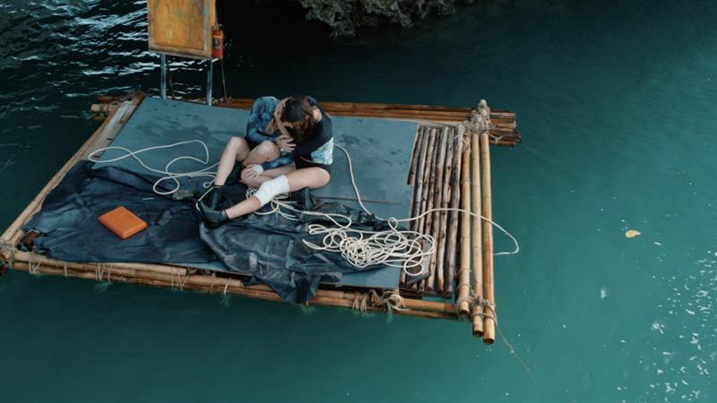 After a plane crash, a woman must survive a pack of killer sharks.