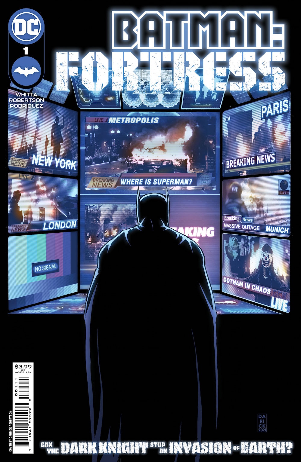 DC announced Tuesday that Whitta and his Oliver co-creator, artist Darick Robertson (The Boys, Transmetropolitan), will re-team for Batman: Fortress, an eight-issue miniseries that follows the Caped Crusader at the center of a crisis, apparently without Superman in his corner. It all begins when a mysterious alien ship emerges and unleashes chaos on Earth. Blackouts, panic, and general fear grip the globe, and with Superman somehow out of the picture, it's up to Batman to marshal the forces of Earth's heroes, all while still holding down the crime wave that's plaguing his home city of Gotham.